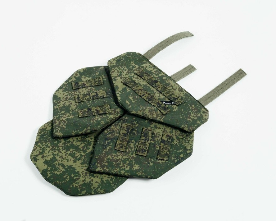 Каждая секция обладает карманом, который закрывается на Velcro, позволяющим извлекать и заменять баллистические пакеты