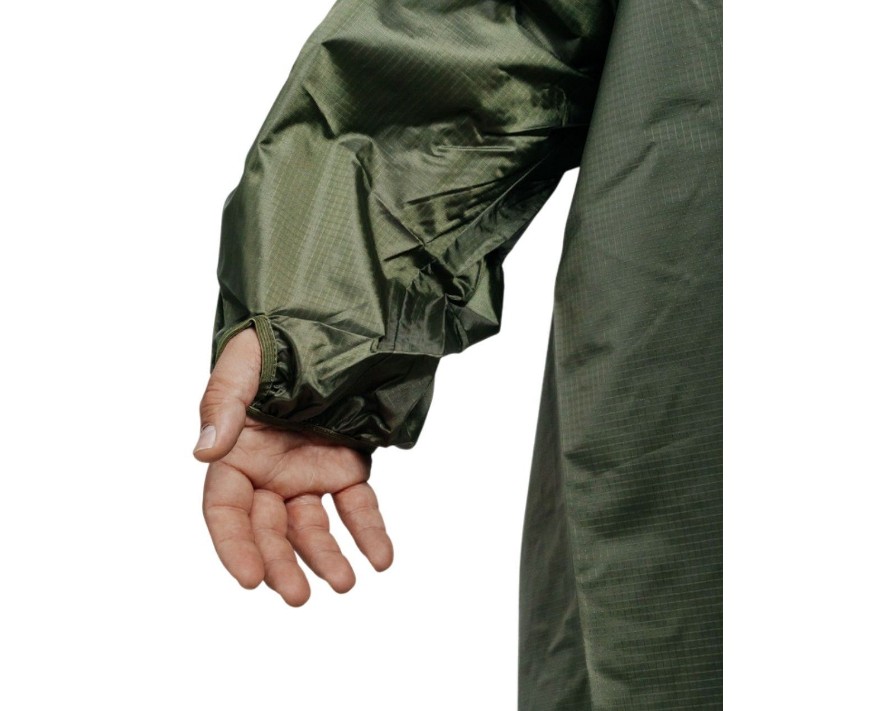 Капюшон увеличен по сравнению с аналогами, позволяя носить его с боевым шлемом