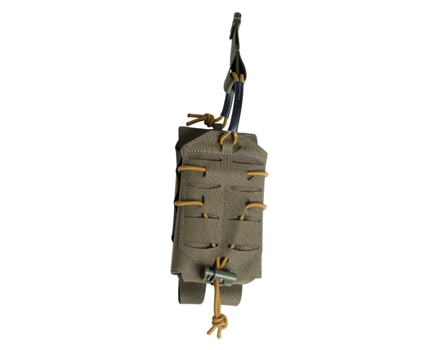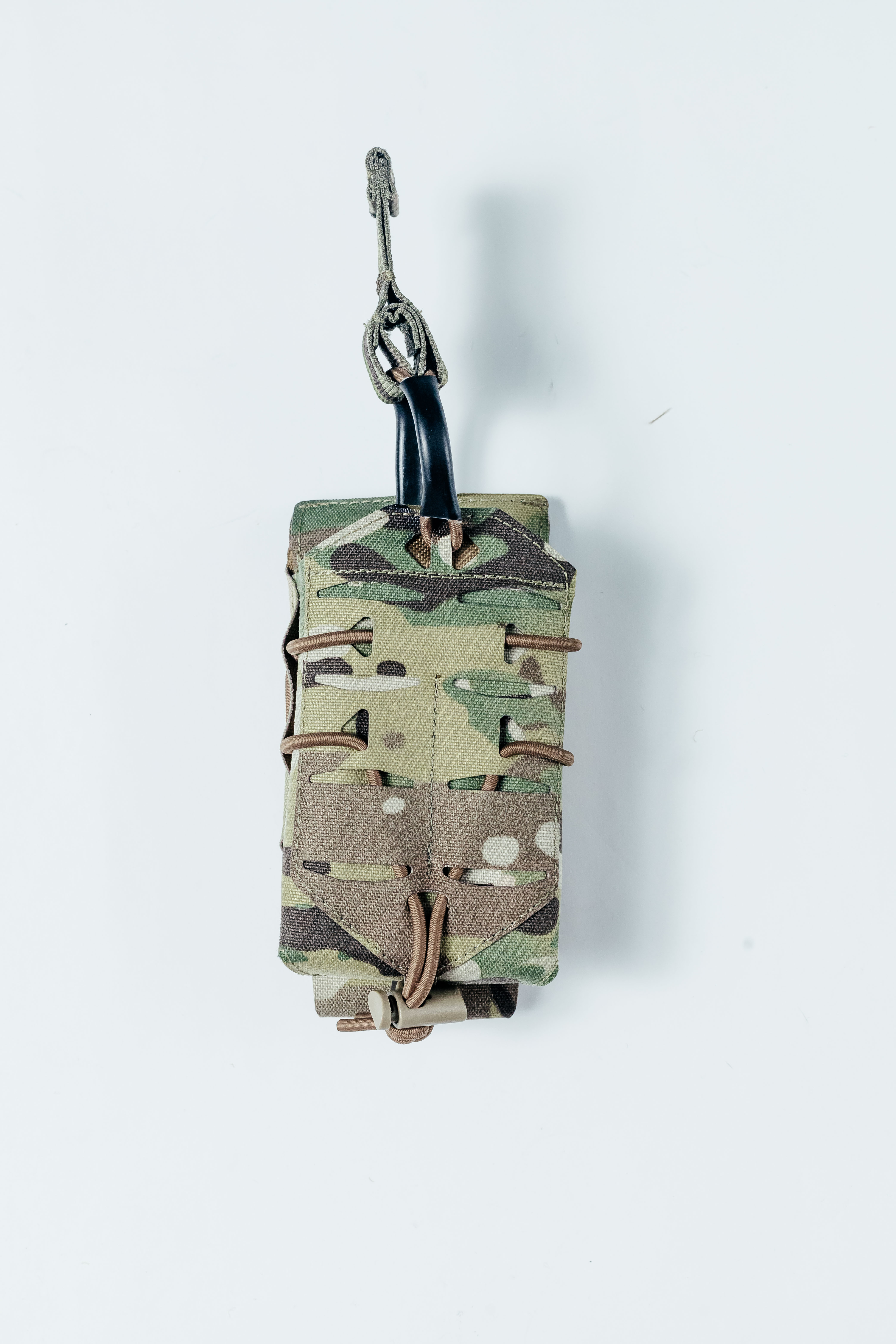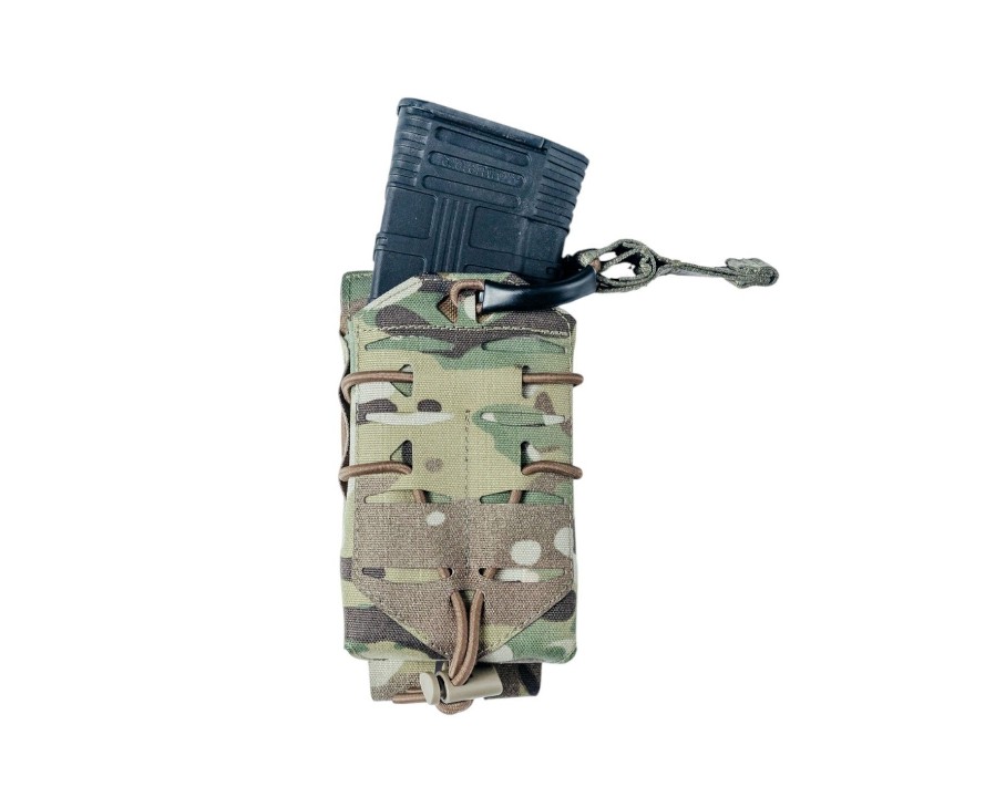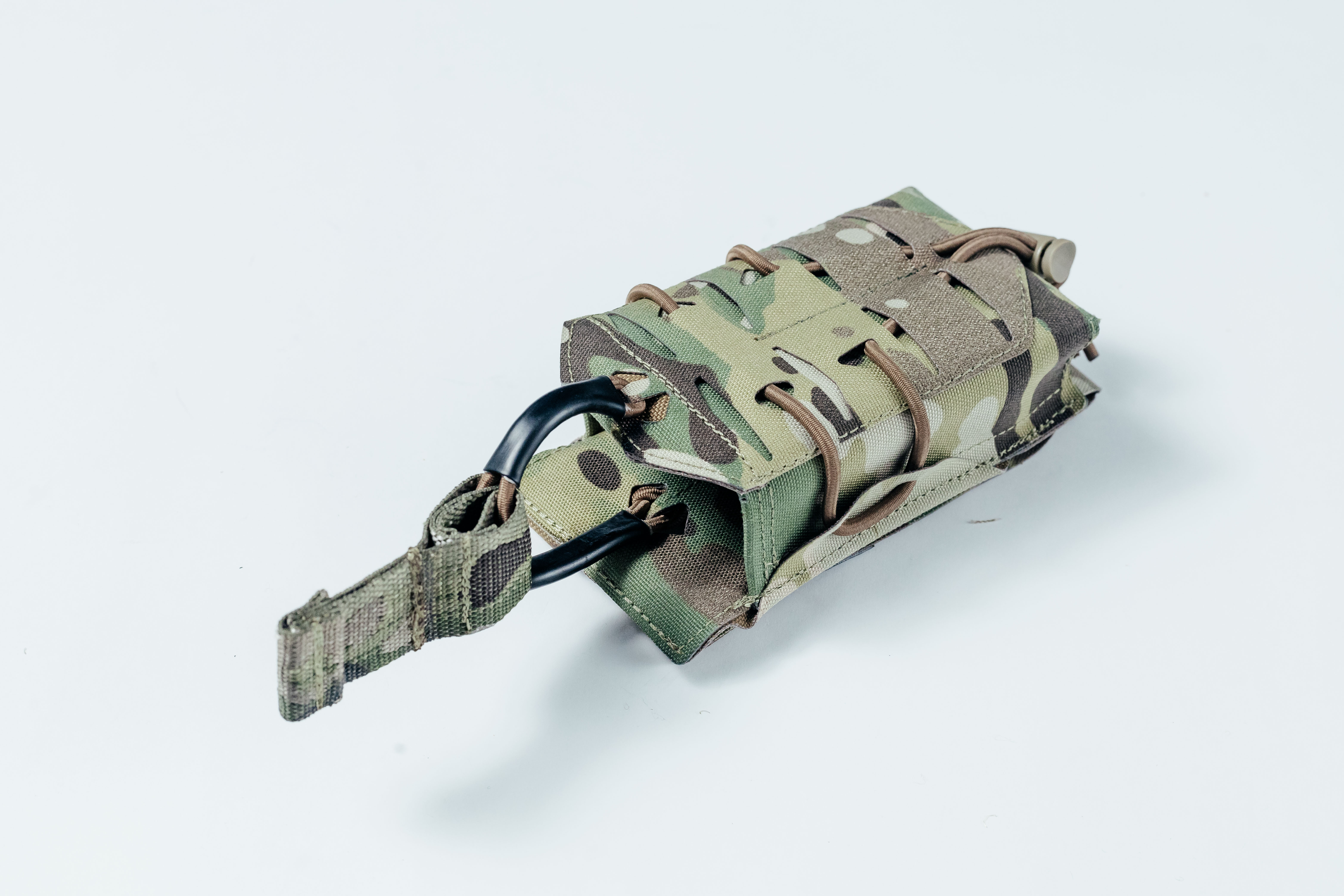 С помощью качественных материалов и технологии лазерной резки нам удалось создать очень эргономичный быстрый подсумок, предназначенный для переноски магазинов автоматов и штурмовых винтовок. Универсальный фиксатор позволяет надежно закрепить содержимое.