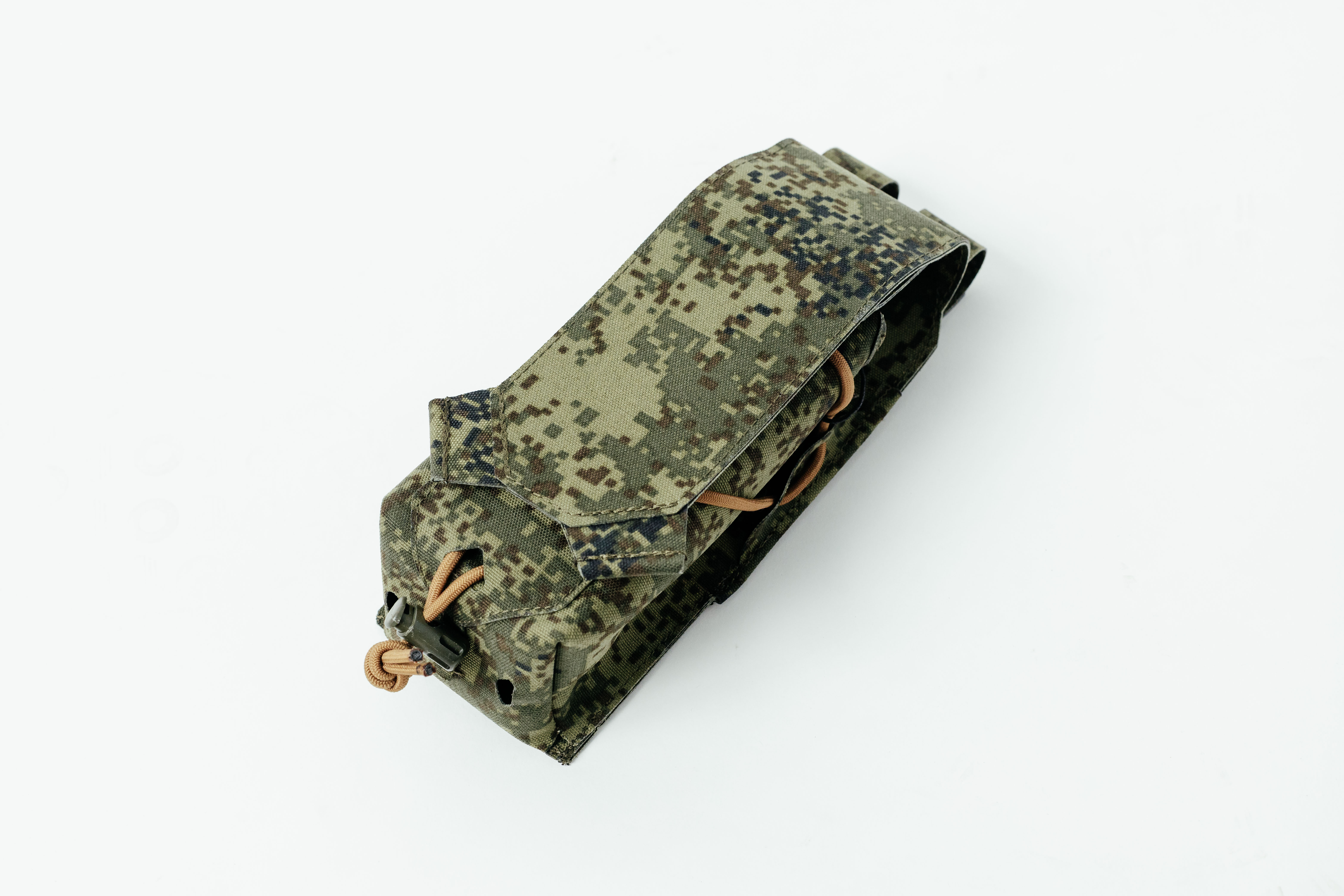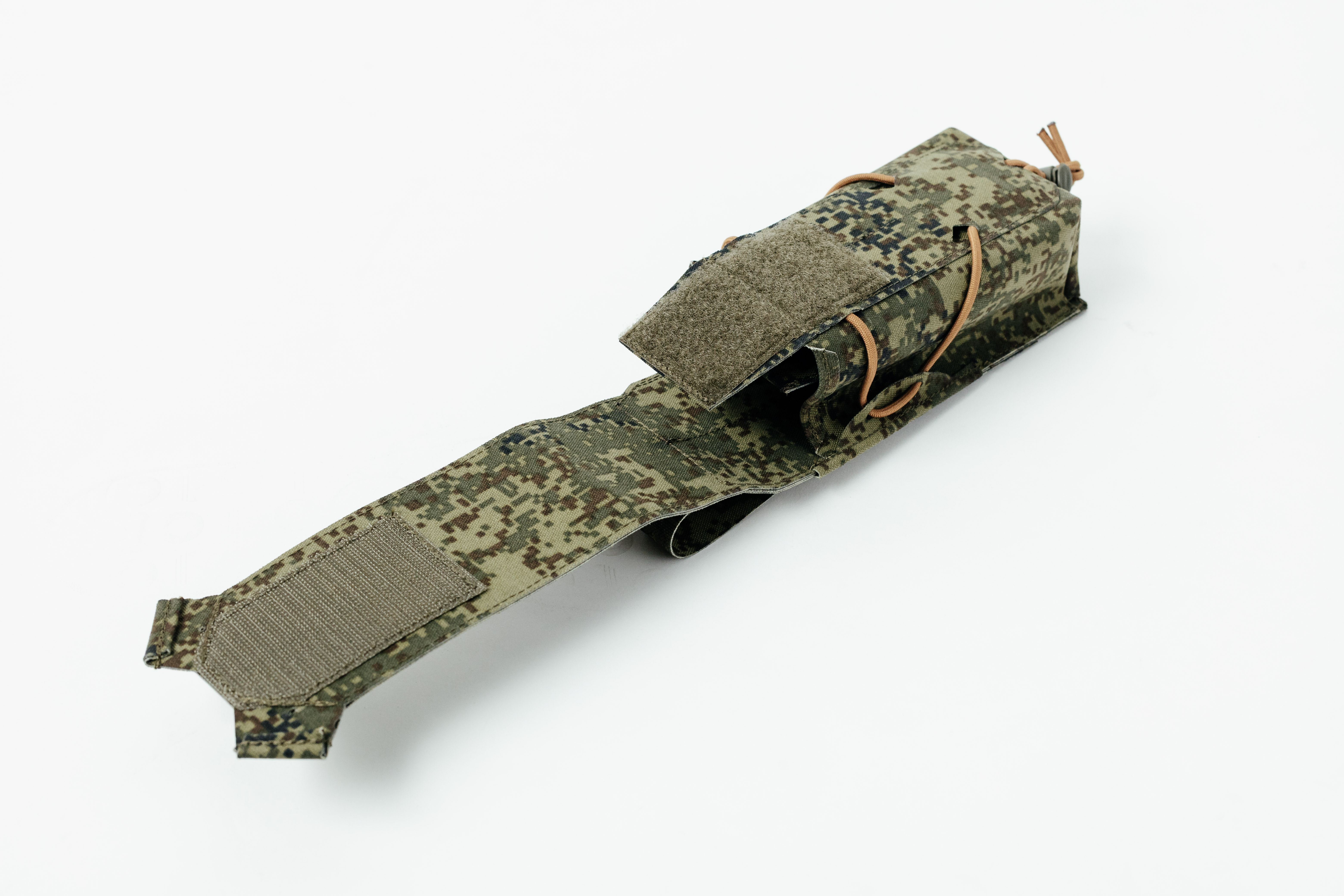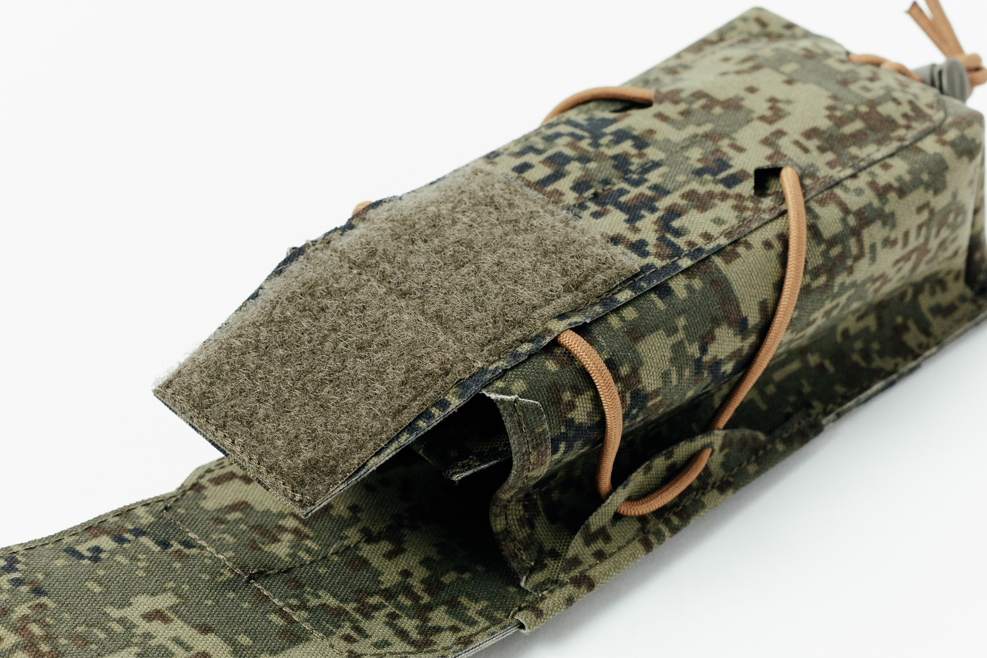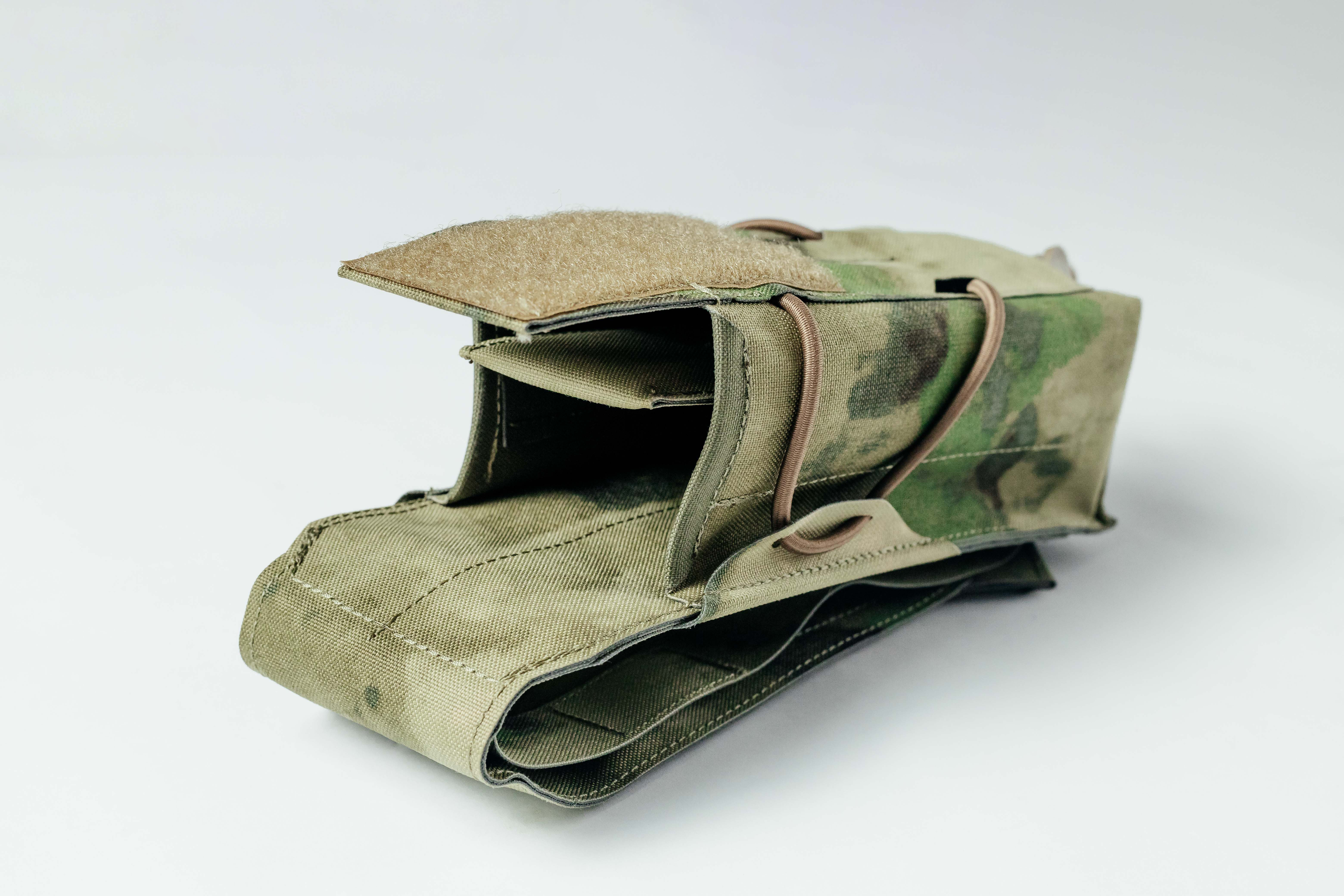 Верхний клапан закрывается на надёжную контактную ленту типа Velcro, позволяя фиксировать содержимое вплоть до магазинов на 40