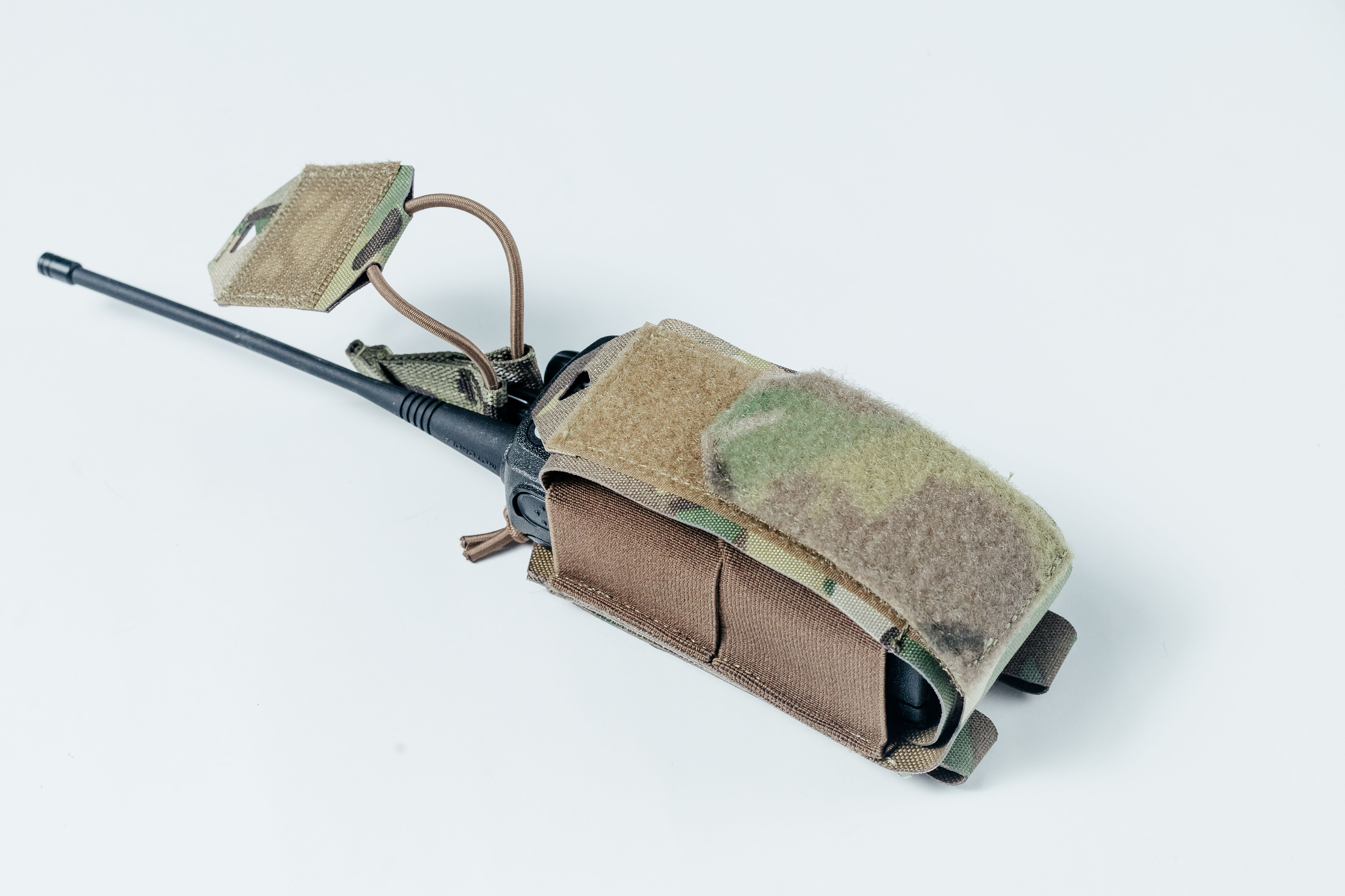Эластичные стропы по бокам подсумка фиксируют радиостанцию и подключённые к ней аксессуары