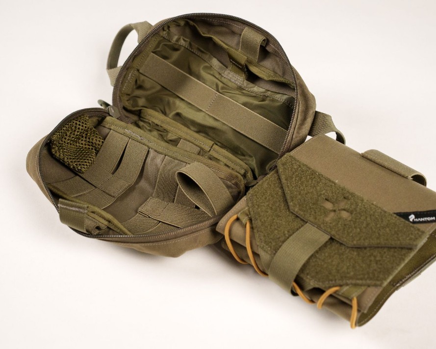 Внутри подсумка Capsa расположены плоские карманы и эластичные стропы для правильного и удобного расположения самых распространённых современных средств оказания первой медицинской помощи