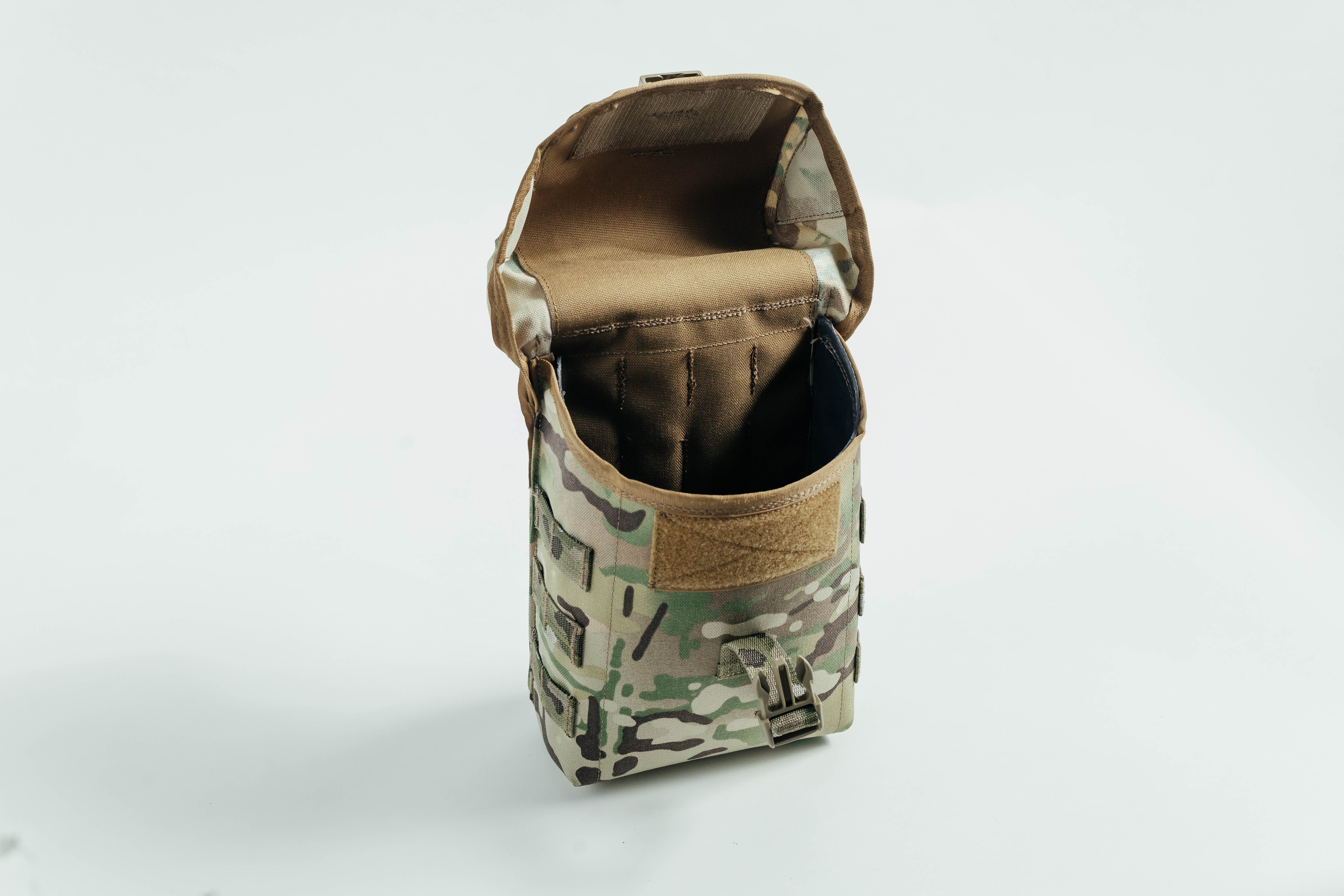 Это решение, обеспечивающее безопасное хранение и удобный доступ к коробам для пулеметов. Жёсткие стенки и широкий верхний клапан являются классическим решением для такого типа подсумков, а размещение 3D-сетки и контактной ленты с тыльной стороны позволило улучшить комфорт его использования в классических разгрузочных поясных системах. Благодаря системе крепления MOLLE/PALS, его легко интегрировать с другими типами экипировки.