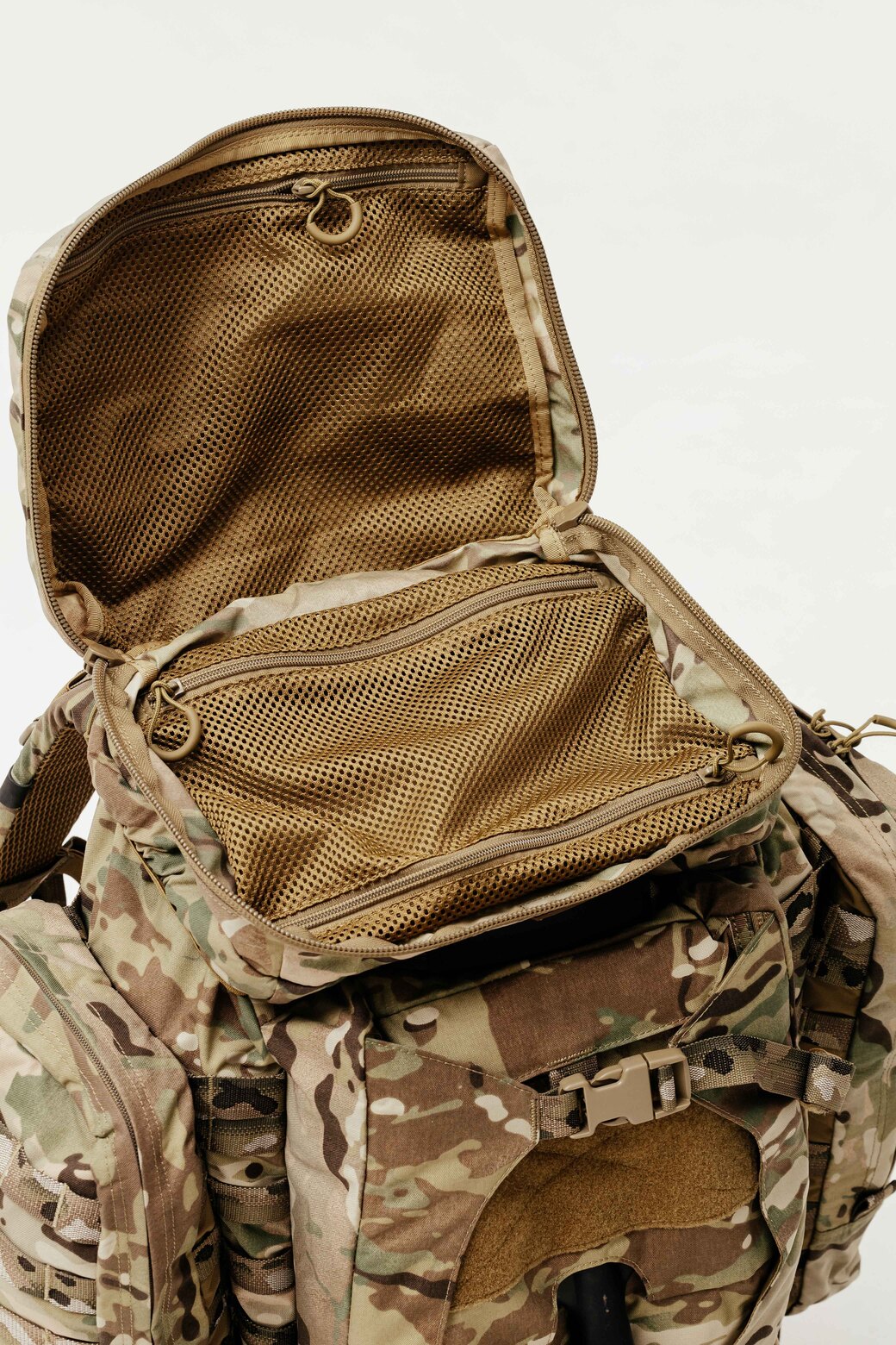 Смотровой отсек полностью открывается и позволяет инспектировать всё содержимое рюкзака без взаимодействия с основным отделением, а сетчатая часть клапана защищает груз от загрязнения